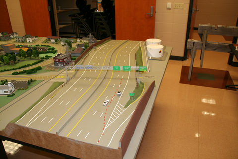 Below are some photos from the Incident Command Module that the Milwaukee-N-Southeastern helped build for the Milwaukee County Sheriff Office in 2006. The project included help from Deputy Sheriffs and Sergeants. The model represents different areas of a large metropolitan area including residential, school, downtown, industrial and a portion of an airport. Several of the buildings were scratchbuilt by one of the members of the MNSE. William K Walthers also helped with some donations of buildings. A local hobby shop also donated some items. The model also includes an HO scale model of a interstate interchange. The Milwaukee County Sheriff Office patrols the freeways within Milwaukee County. The model is still in use today for training.